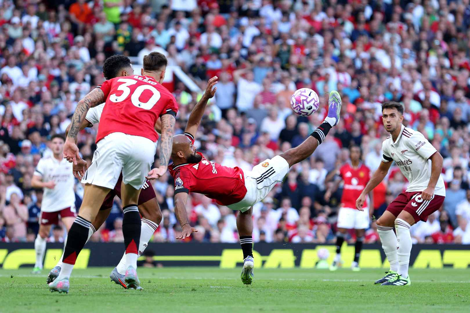 Атаки «Юнайтед» на этом отрезке немного притихли из-за владения мячом «Арсеналом», но «Олд Траффорд» взорвался, когда к линии поля вышел новичок команды Беньямин Шешко, сменивший Маунта и дебютировавший в красной футболке.